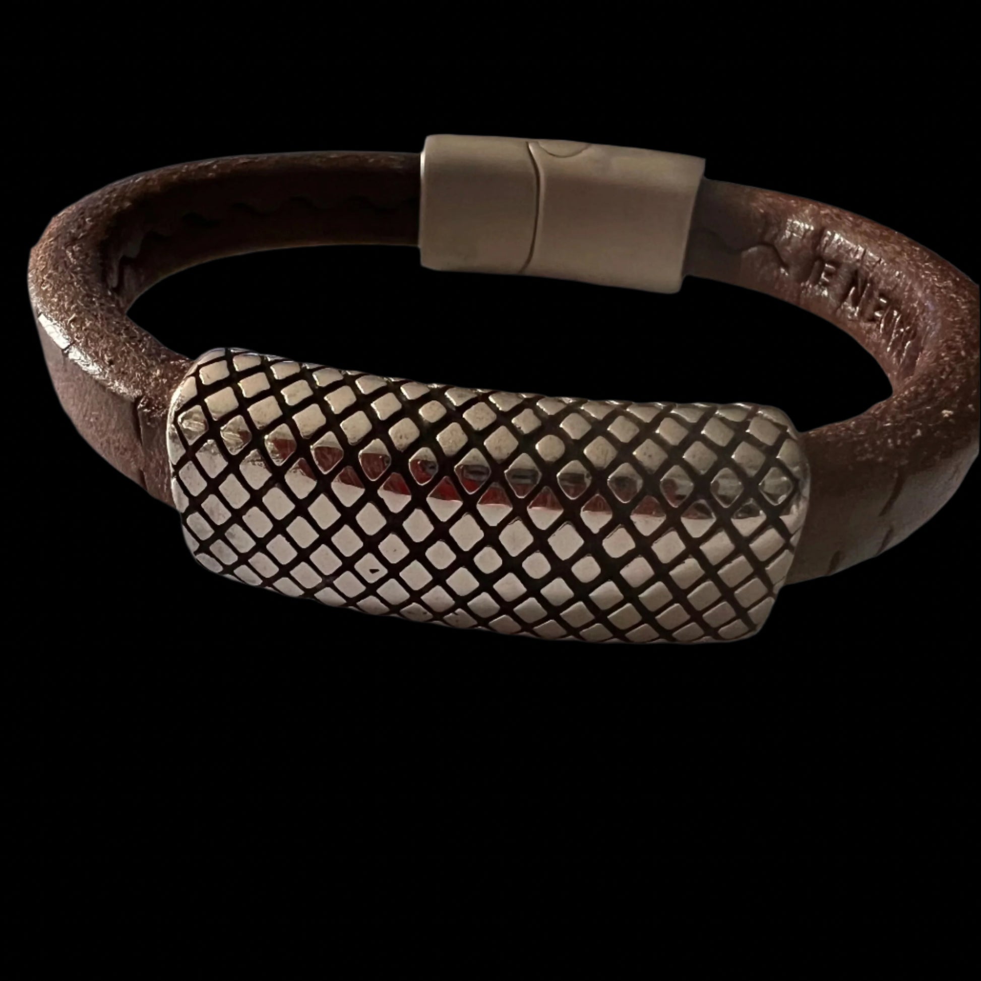 Stainless Steel Brown Leather Geo Design